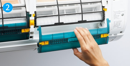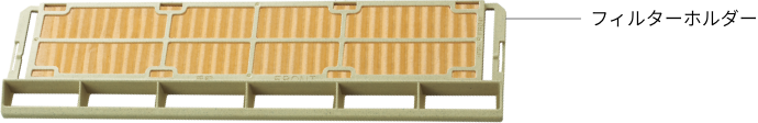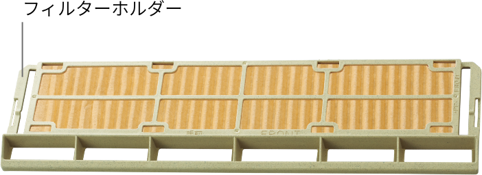 防カビ材を練り込んだ極細フィルターで、ホコリがエアコン内部に侵入するのを防ぎます。