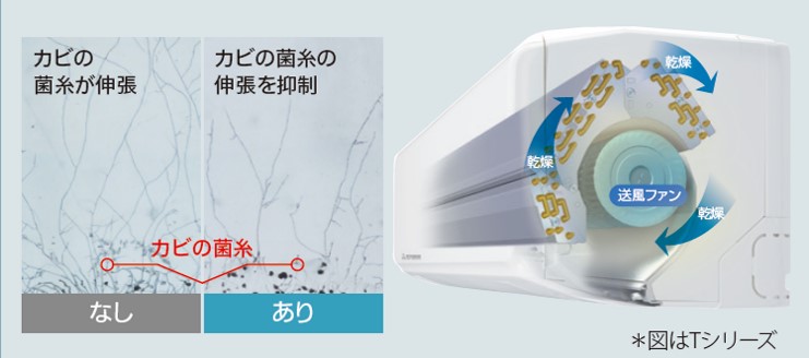 抗菌処理を施した送風ファンが、カビの働きを抑制します。