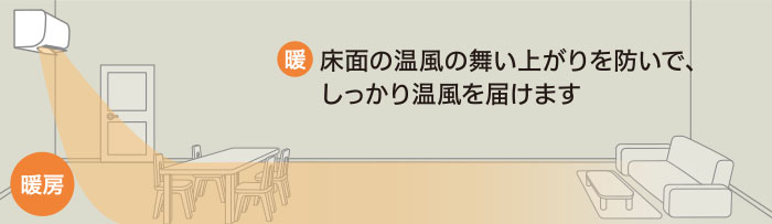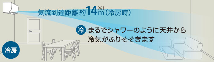 エアコン近くをすばやく設定温度に導いて快適にします。
