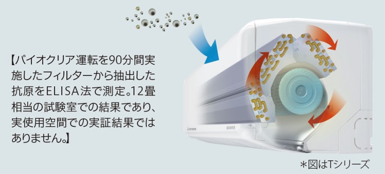 フィルター付近の温度・湿度をコントロールして、アレル物質(花粉)の抑制効果を促進します。