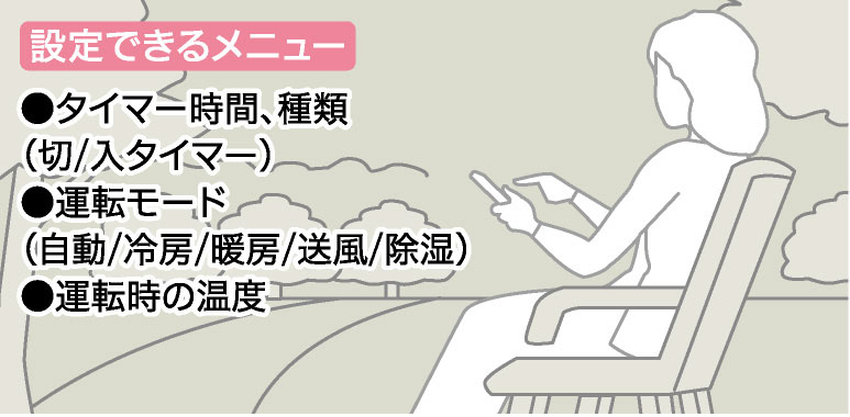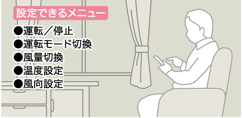 外出先からエアコンをONにしておけば、帰宅してすぐ快適。切り忘れた時でも外出先から運転OFF。